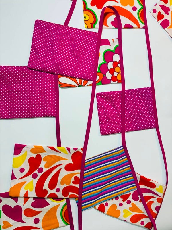 gemaatk van een dekbedhoes van de kringloop, een stofje van de markt en een lapje uit de collectie van oma.