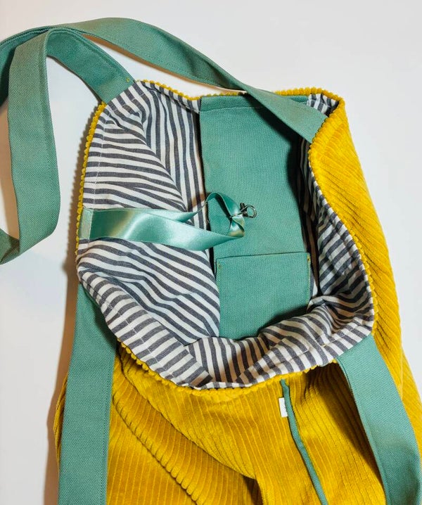 Gemaakt van: een lap van de markt, een reststuk stof van een collega en een dekbedhoes van de kringloop.