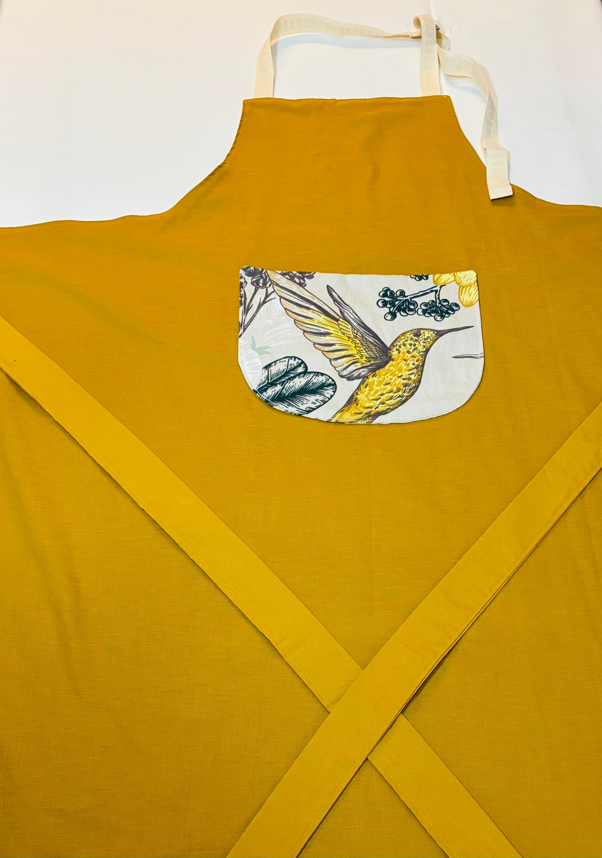 Schort MAXI is mega groot. Genoeg ruimte om bijna helemaal om je heen te vouwen met striklinten die lang genoeg zijn om terug naar voren te strikken. MAXI is dubbelzijdig dus aan beide kanten mooi.